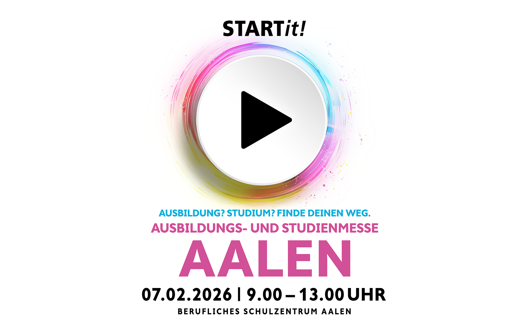 Am Samstag, 07.02.2026 findet die STARTit! Ausbildungs- und Studienmesse von 9 bis 13 Uhr im Berufliches Schulzentrum Aalen statt.